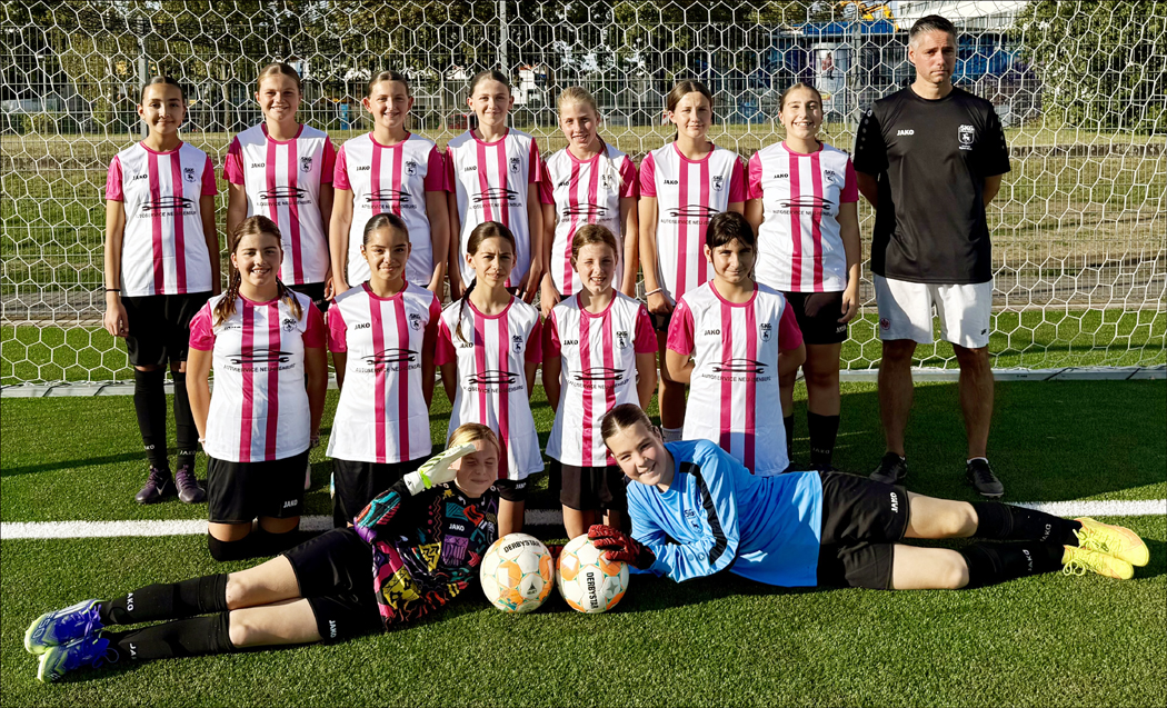 Reihe oben stehend von links nach rechts: Louna Bellahsen, Emma Pfaff, Leandra Mazzone, Nella Lohmann, Marie Eckermann, Lilly Schött, Emel Engin, Trainer Timo Heuser. Reihe Mitte kniend von links nach rechts: Letizia Cillari, Loana Heuser, Ayda Fil, Nellie Lenz, Elena Flora. Unten liegend von links nach rechts: Mia Krause, Lisa Weller.